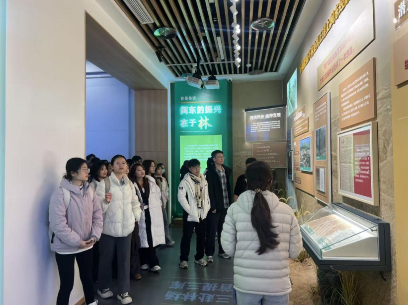 首日,同学们走进三库生态文明实践营地,实地学习“森林是水库、钱库、粮库、碳库”的绿色发展理念。通过亲眼见证“三库+碳库”理念指引下的生态成果,同学们对习近平生态文明思想的实践伟力有了具象认知。这不仅是生态课,更是一堂深刻的国情思政课,让宏大的政策叙事转化为可感可知的家乡变迁,深化了学子们对“国之大者”的理解。