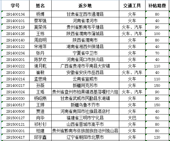 2017—2018学年寒假家庭经济困难学生返乡路费补助拟推荐名单,并上报学校。现将名单予以公示,公示期3天(2018年1月16日至2018年1月18日)。公示期内,如有异议,请联系学工组王老师,联系电话:0591-22866571。