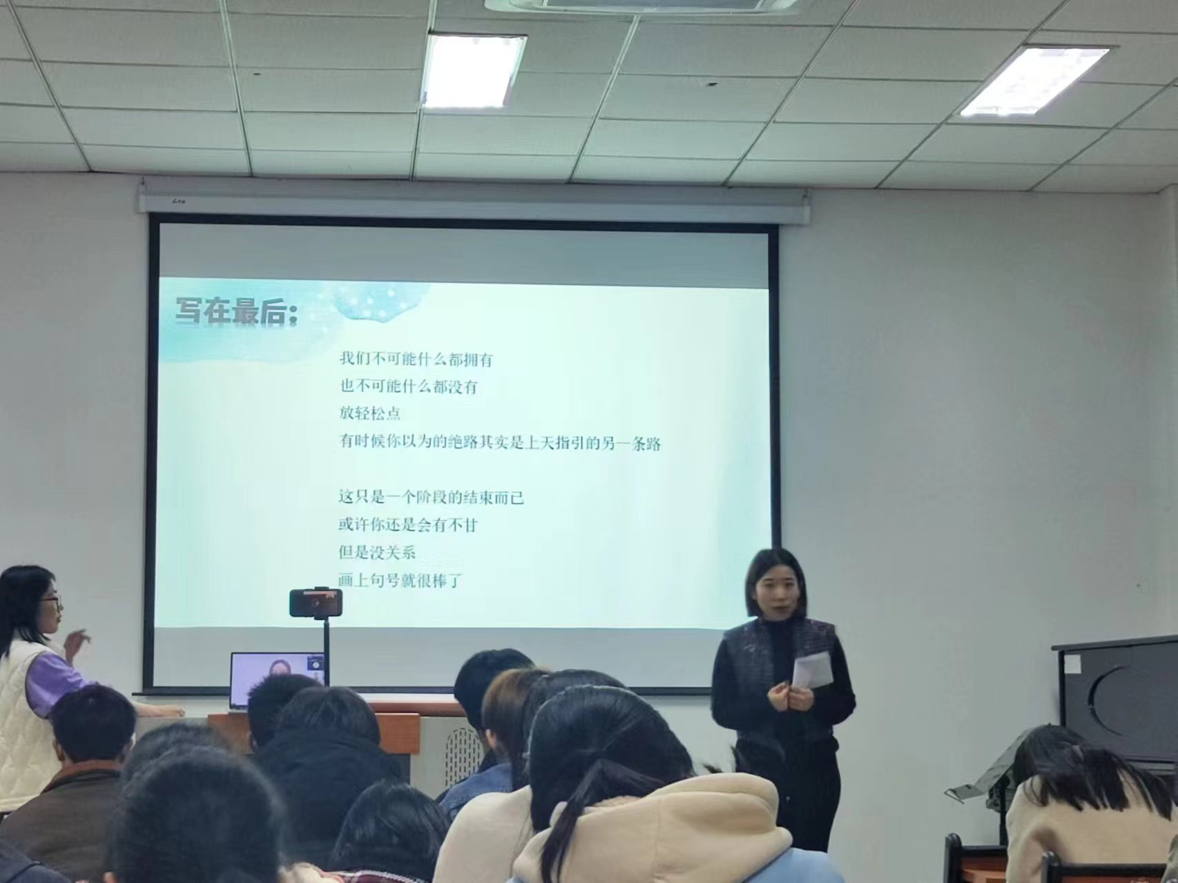 开展了春季“生命守门员”讲座培训。应用心理学系赵陵波教授担任主讲人,各班班长、团支书、心理保健员以及各宿舍舍长参加。