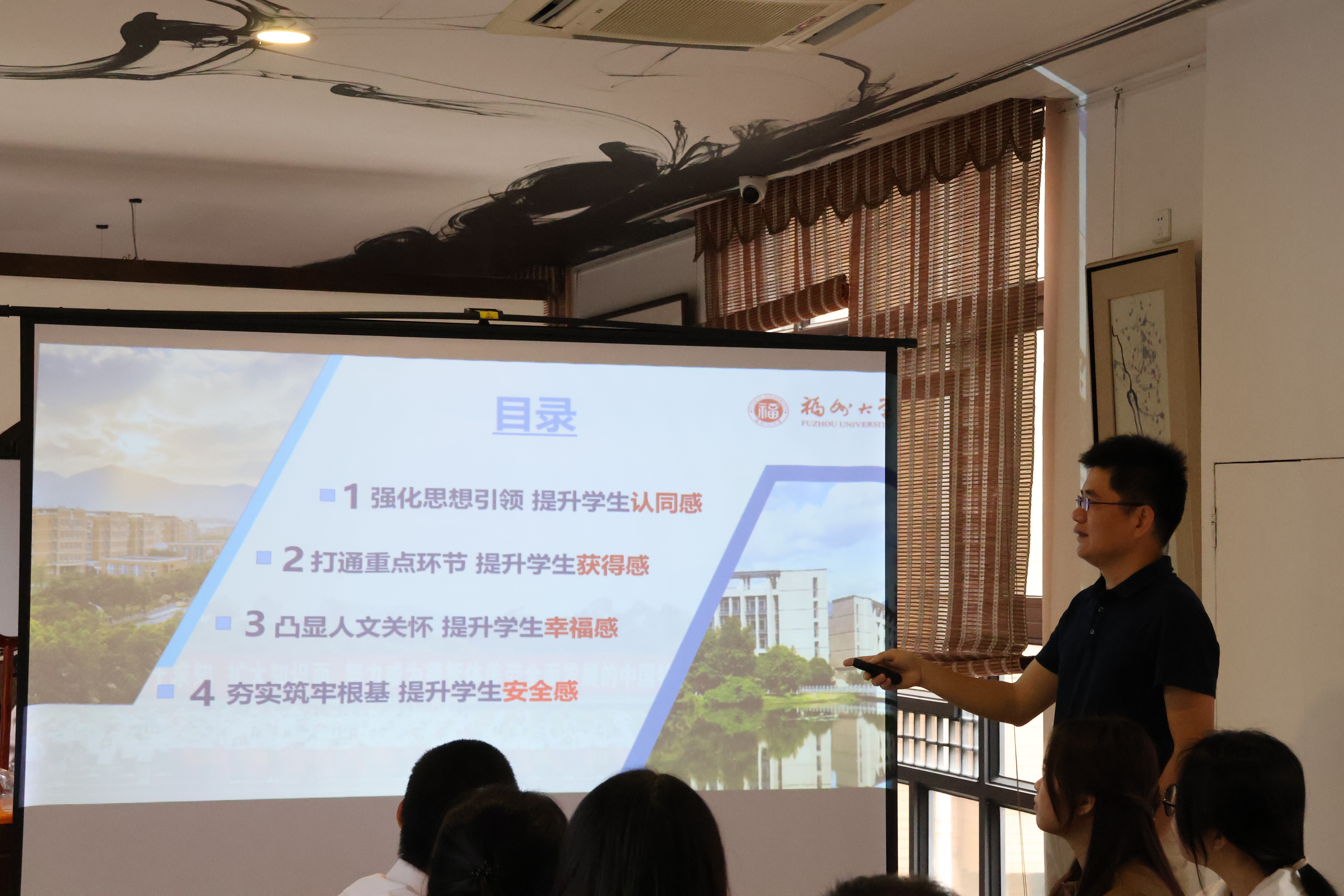 会议伊始,学院党委副书记陈永福介绍了学院学生工作情况,围绕大型大学生沉浸式戏剧《嘉木留芳》、学生劳动实践基地建设、传统文化育人经验、以心理情景剧为切入的心理育人服务等特色工作,介绍色情游戏
