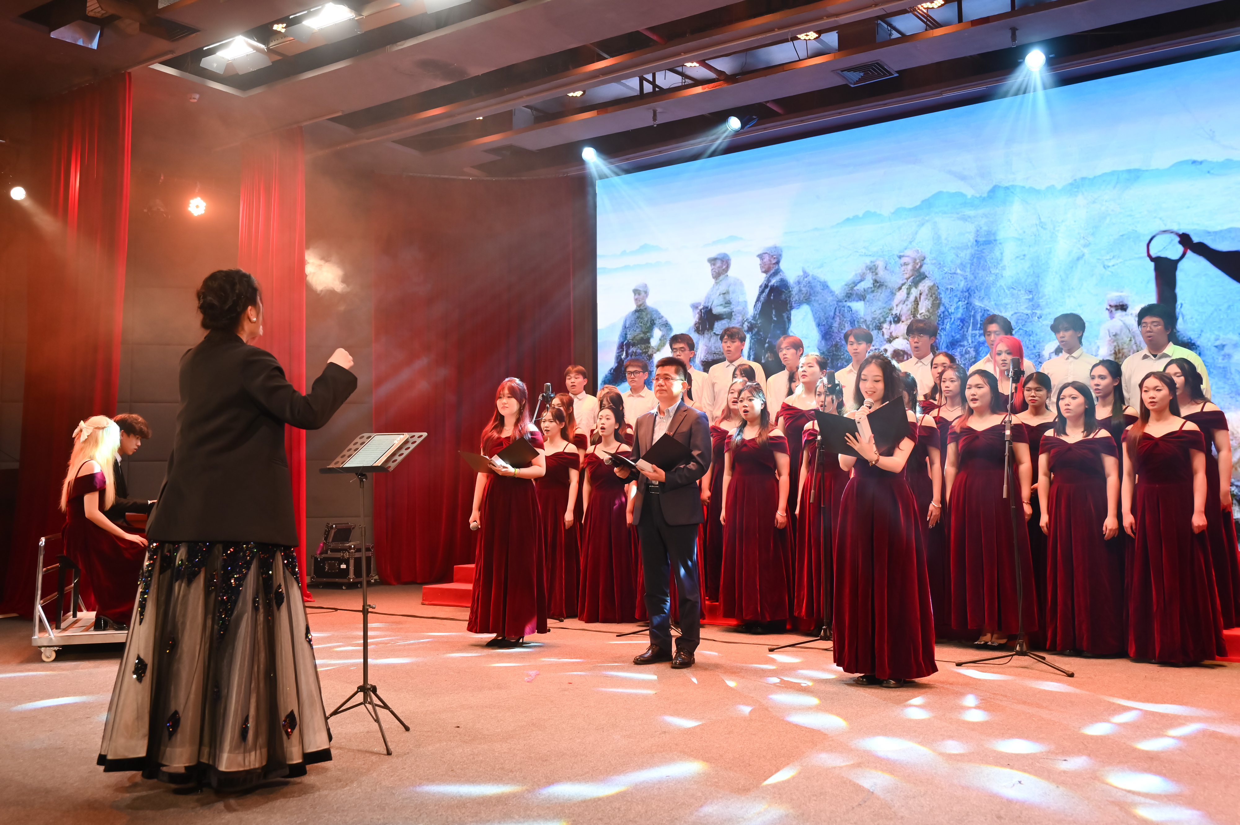 音乐学系合唱团带来暖场表演,一首气势开阔的《大江东去》与一曲悠扬旷远的《沂蒙山下》呈现丰富故事感,为歌会开场启幕。