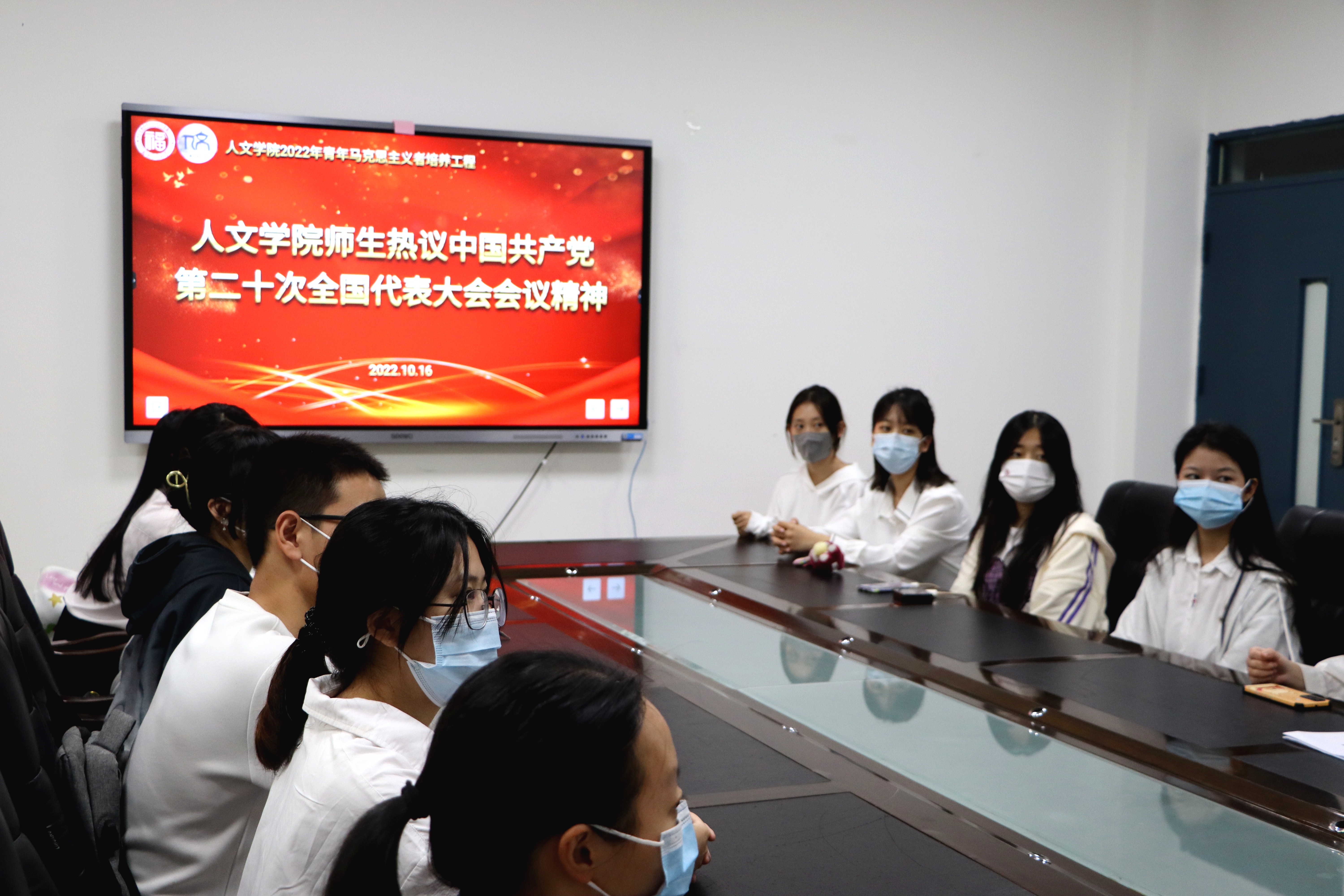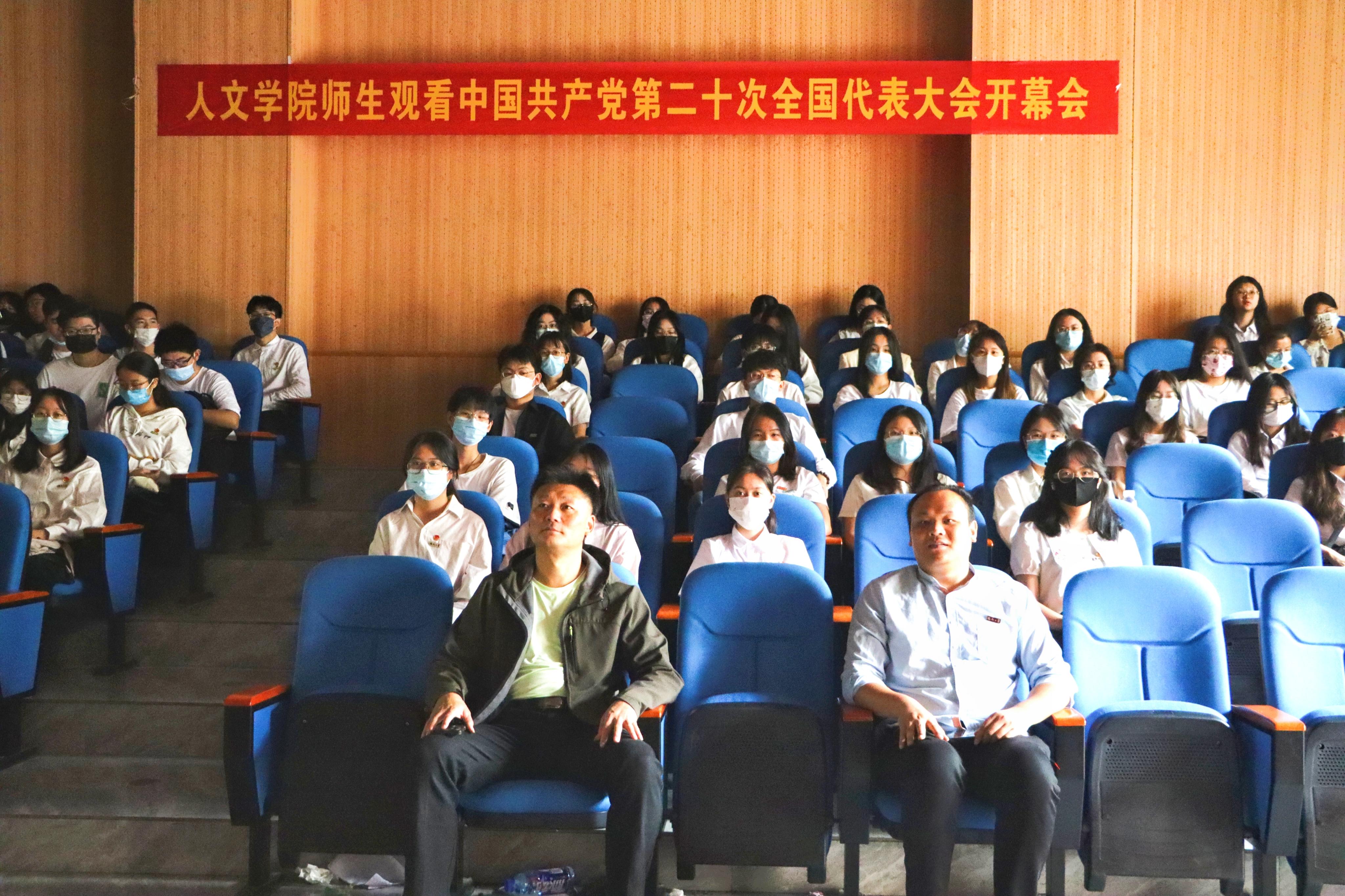 党委王群书记,院党委陈永福副书记,院团委齐朝阳书记,辅导员房菁老师,学院团委、学生会成员,学生党支部书记、青马班学员、学生党员等160余人到场共同聆听和学习二十大报告。各班级组织学生线上收看并学习。