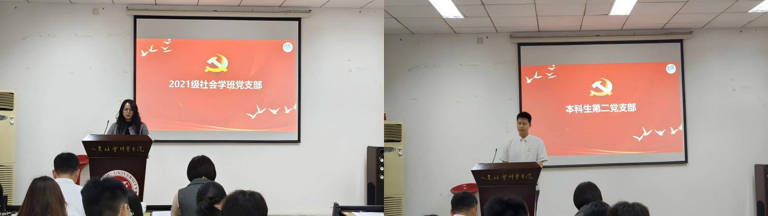 铜盘校区研究生社会学心理学党支部结合实际情况,彰显服务意识,坚持以学促干;铜盘校区研究生社会工作2班党支部坚持“以学生为中心”的导向,精准分析问题,内容详实;研究生心理学党支部展示支部发展成效,提出相关改进措施;研究生艺术党支部常态化开展音乐党课、音乐志愿服务,打造有艺术特色的支部品牌活动;2021级社会学党支部围绕重点工作提出进一步巩固拓展学习成果的发展计划;本科生第二党支部展示支部成员社会实践成效,体现基层党组织的战斗堡垒作用。