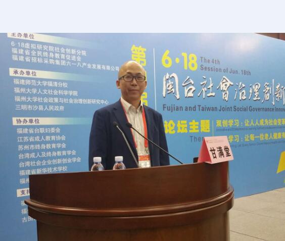社会政策与社会治理创新研究中心、三明市沙县人民政府共同承办。本次论坛, “双创学习:让人人成为社会变革者”和“乐龄学习:让每一位老人健康有尊严”两大主题贯穿始终。专家学者们独辟蹊径,分别发表了自己独到的见解。台湾学者胡哲生教授的《接合村镇人文经济的创业教育新设计》、黄富顺教授的《台湾新近高龄学习的推展》、余嫔教授的《长者安康学习旅游与安康旅宿经营服务与探讨》,韩国金润侹教授的《韩国老年终身教育的政策与实施现况》,都给与会者很大启发。人文社科学院甘满堂教授汇报了自己的最新研究成果《社区互助养老:福建村办社区居家养老服务的四个层次》,得到与会学者的好评。