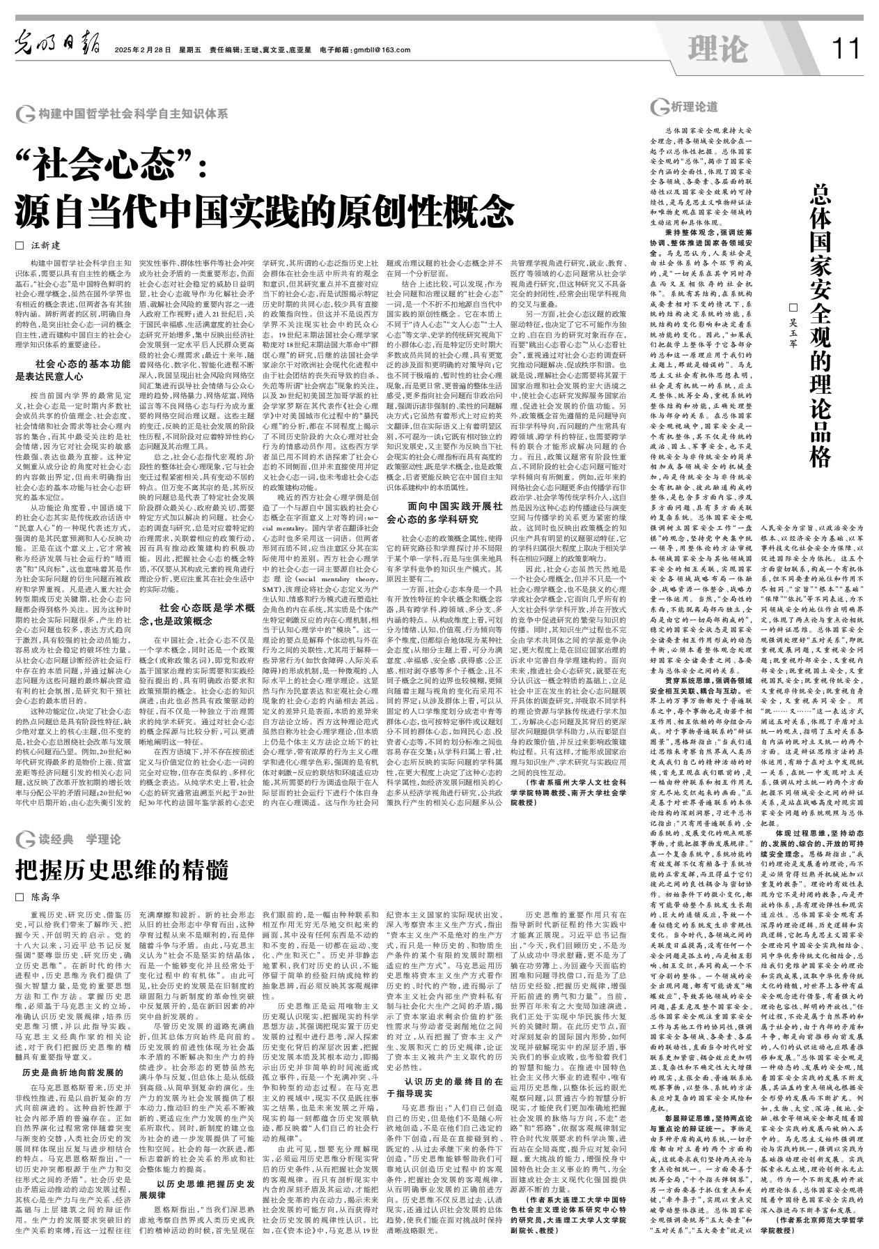 特聘教授汪新建于2025年2月28日在《光明日报》理论版上发表题为《“社会心态”:源自当代中国实践的原创性概念》的文章。