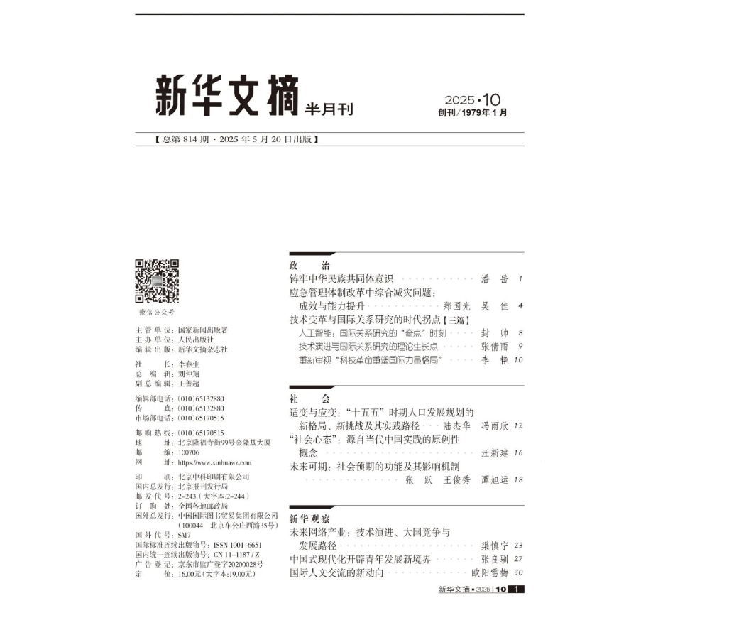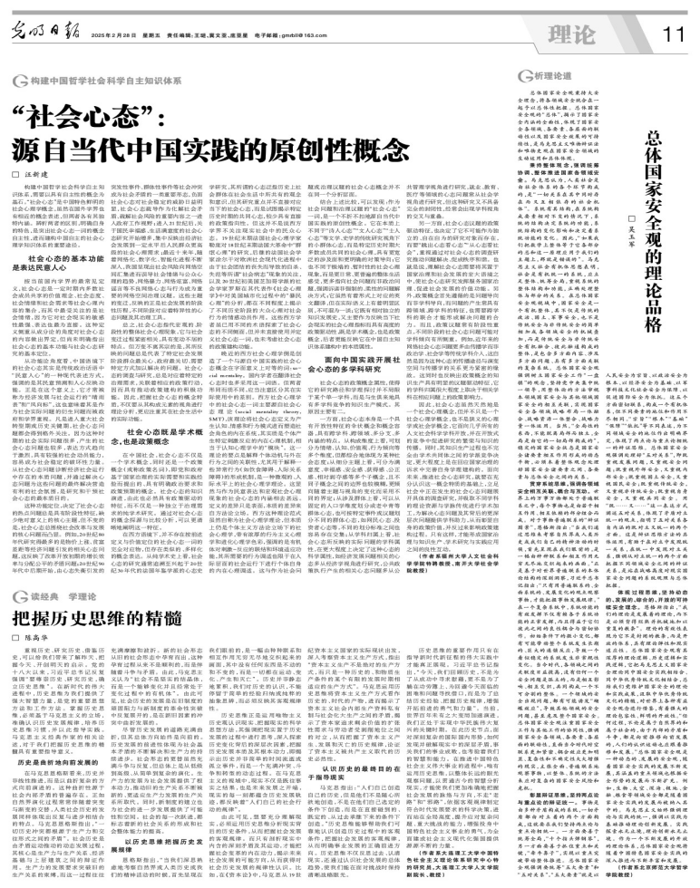 特聘教授(社会学系教师)汪新建教授于2025年2月28日在《光明日报》理论版上发表《“社会心态”:源自当代中国实践的原创性概念》的文章,被《新华文摘》2025年第10期全文转载。汪新建教授从“社会心态的基本功能是表达民意人心”“社会心态既是学术概念,也是政策概念”和“面向中国实践开展社会心态的多学科研究”三个层次严谨科学地论述了社会心态的功能论视角、何为社会心态等,进一步深入探讨了如何“构建中国哲学社会科学自主知识体系”。