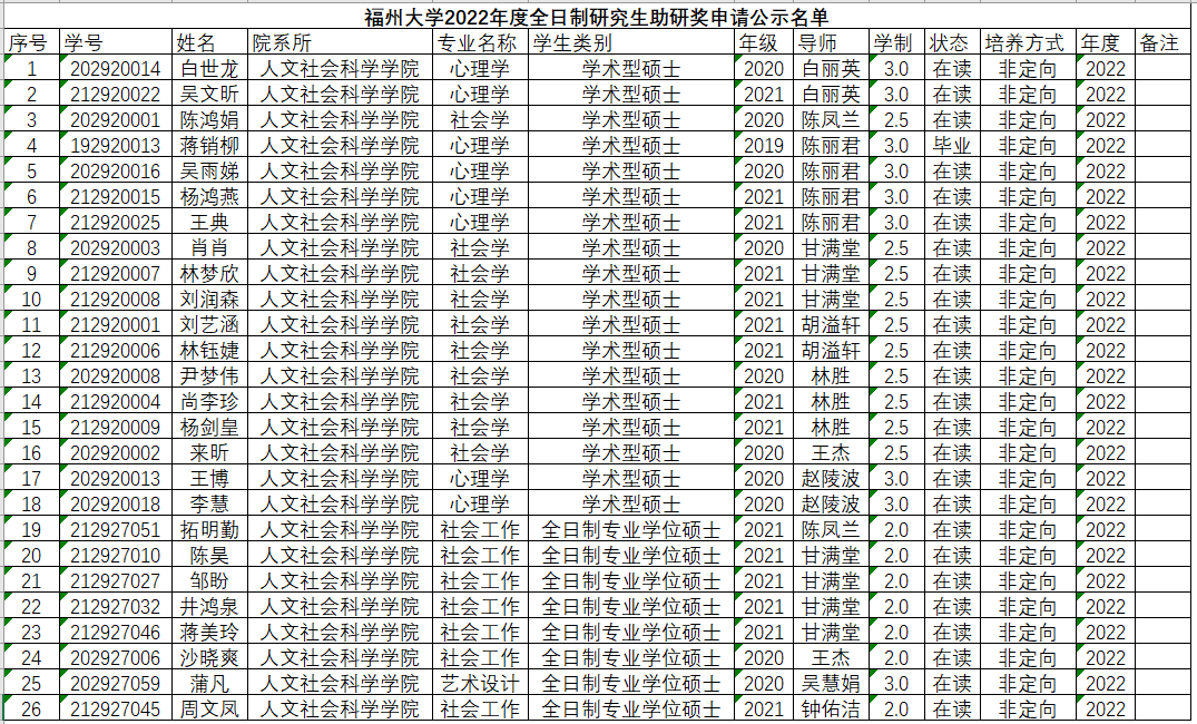现将2022年度色情游戏 全日制助研金申请名单公示(如下图)。