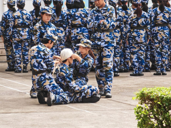 格斗训练里,新生们出拳利落、格挡有力,尽显少年果敢;投掷练习时,他们反复调整姿势、找准发力点,让每一次投掷都更靠近目标;医疗救护课上,他们用指尖翻飞叠三角巾,在实操中读懂生命的重量。