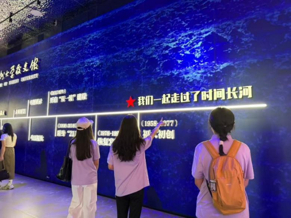 馆内“筚路蓝缕·长河卷”主轴展览通过图片、图表及实物展品,让新生沉浸式体验学校从创校初期的艰难到如今硕果累累的历史变迁过程。