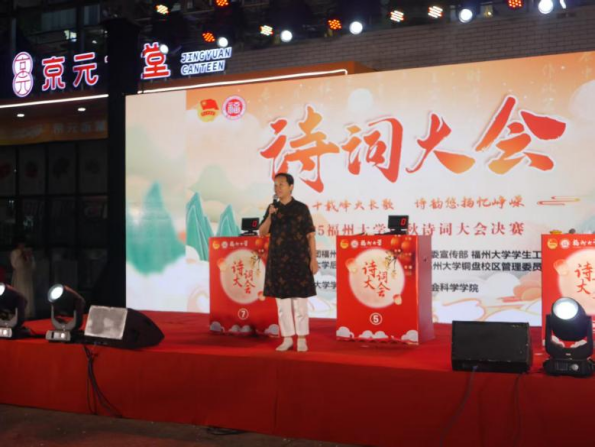 汉语言文学专业梁桂芳老师对诗词大会作点评与总结。她首先对活动的成功举办与有序组织表示充分肯定,并欣喜地指出,诗词文化在同学中的影响力正持续扩大,鼓励大家勇于展现自我,积极参与校园文化活动。她强调,诗词是中华民族刻在基因里的文化密码,中华文明更是诗的国度;诗词大会作为传承中华优秀传统文化的重要载体,应让诗词融入日常,成为滋养生活的精神源泉。最后,梁老师表达了对活动越办越好的诚挚祝愿,期望热爱古典诗词的同学日益增多,并寄语大家在美好的秋光中从容品味、静心吟诵,共同感受中华诗词的永恒魅力。