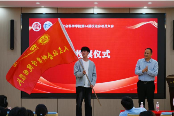 随后进行授旗仪式,学院团委书记齐朝阳向运动员代表授旗。旗帜挥动,瞬间点燃了全场激情,也凝聚起全体运动员为集体而战的坚定力量。