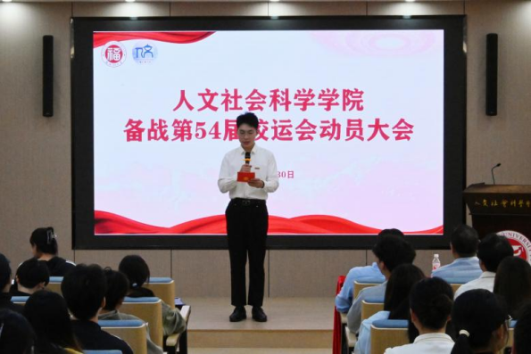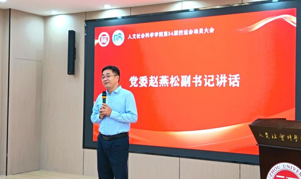 学院党委副书记赵燕松作动员讲话。他充分肯定了运动员们的热情与付出,并系统性分析了学院当前的参赛形势与优势项目。他强调,全体运动员要珍惜机会、科学训练、注意安全,力争在优势项目上取得突破,同时鼓励更多同学积极参与,体验体育魅力,并要求学院团委、学生会全力做好后勤保障,让运动员无后顾之忧。最后,他表达了对人文健儿在本届校运会上赛出风格、赛出水平、再创佳绩的殷切期望。
