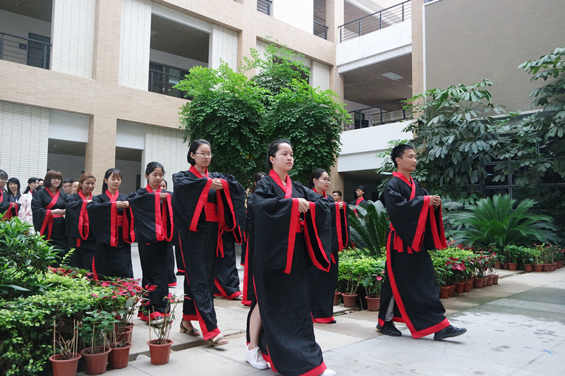 在赞礼带领学生们宣誓完毕后,由色情游戏 副院长梁桂芳老师为诸生明毕业之训。梁老师在讲话中教导学生要永怀感恩之心和谦逊之心。对于即将毕业要步入社会的毕业生们,梁老师指出为人处事要不忘感激,切不可忘恩负义骄傲自满;毕业并不意味着学习的结束,反而是另一种全新的开始,要常怀谦逊之心,“满招损,谦受益”,要谦虚向他人学习,不断努力完整自身。最后,成德礼备,明训已聆,谢师礼顺利结束。