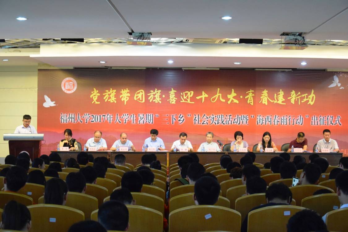 2017年大学生暑期“三下乡”社会实践活动暨“海西春雨行动”出征仪式在旗山校区大学生素质拓展中心学术报告厅顺利举行。伴随着雄浑嘹亮的国歌声,出征仪式正式开始。