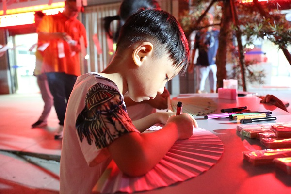 布场工作完成后,本次禁毒宣传活动正式拉开帷幕。新奇的“禁毒宣传知识竞猜”、“DIY折扇”、“《清风徐来》展播”等活动吸引了大量的小区住户。一位11岁左右的孩子,手中高举着字谜,冲到志愿者队员的面前大声喊出答案,期待着正确答案的公布——单纯的知识记忆是枯燥乏味的,但在这里,学习禁毒知识的过程充满了乐趣。与此同时,队员们通过活动告知群众,禁毒不仅仅是国家的责任,同时也是每个公民的责任,希望大家都能积极参与其中,防毒于微、杜毒于渐。
