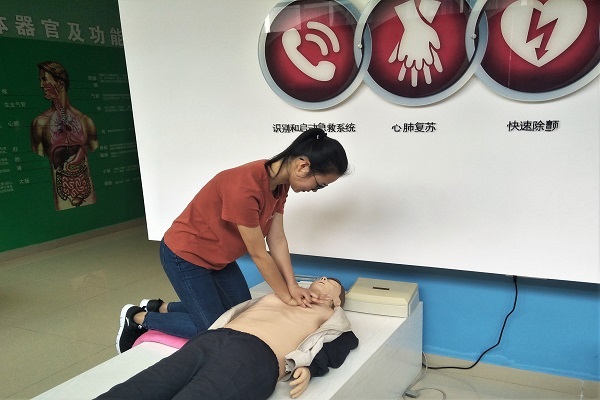 生命健康安全体验教室是全国首个建立在高校内的红十字教育场馆,共包含14个模块。该馆以生命健康安全为主线,以体验式加情景式活动为载体,通过通俗易懂又兼具趣味性的微课堂方式展示与用电、食品、交通等相关的安全知识。同学们在讲解员的带领下,通过知识讲解、视频学习、趣味游戏等方式先后参观体验了馆内的用电安全、食品安全、消防安全、禁毒和防艾等十余个模块。期间,同学们在讲解员进行ACLS综合急救技能训练后也亲身进行实践体验,在急救技能的实际操作中,同学们对急救知识有了进一步的把握,也对急救的重要性有了更加深刻的认识。