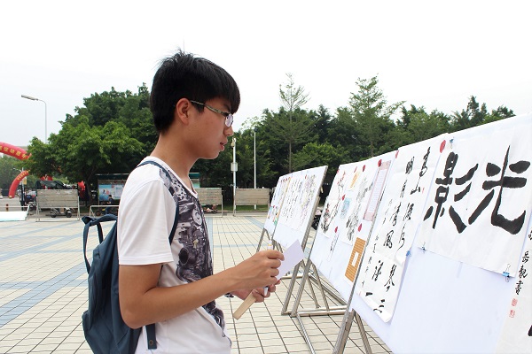 记者团、平面媒体部联合主办的“光影·书卷”书画摄影展在青春广场顺利举办。