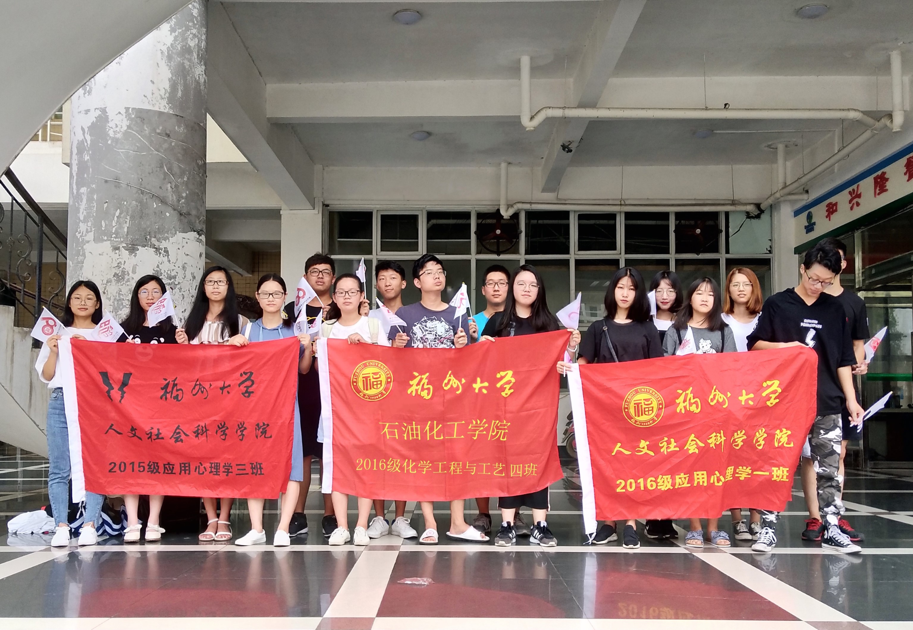 2018年5月30日,16级化工四班团支部联合15级应用心理学团支部和16级应用心理学团支部举办了“彩旗飘飘迎飞扬,信纸张张寄恩情”的团立项活动。支部成员将60周年纪念徽章与谢意卡片、定制彩旗结合,赠于校园内各职位的工作人员,赠送纪念品的同时传递感恩之心。