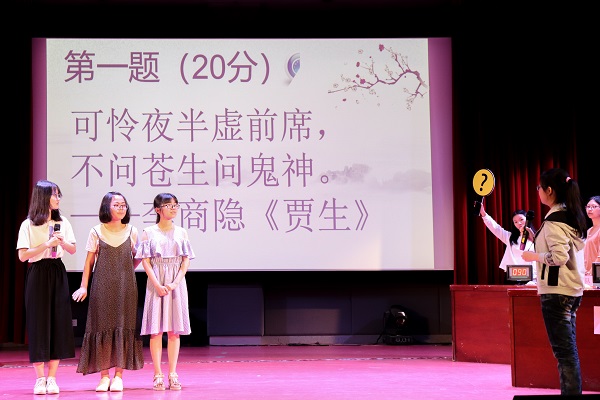 共有抹茶玛奇朵队和运气爆棚队两支队伍进入决赛。本次比赛内容设置新颖有趣,一改竞赛类活动枯燥的特点,“旁敲侧击”、“根据诗句说典故“听歌猜诗名”等环节成功燃起观众热情。参赛队伍选手们调动诗词文化知识储备积极应战、毫不示弱。在“根据诗句说典故”环节中,抹茶玛奇朵队的选手娓娓道出历史典故,生动形象又不失真实,赢得评委老师的表扬。“飞花令”环节将比赛推向高潮,人文学子在灵活运用专业知识的基础上增添个人特色,展示了独特的人文风采,引发现场阵阵掌声。
