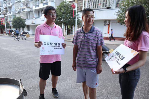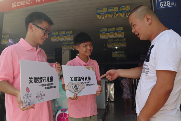 赴浦城“心辅相助,留梦守情”实践队第一站拉开了帷幕。在“奋进新时代,青春争先锋”号召下,实践队队员们走上浦城街头,用告示牌来呼唤对留守儿童的关怀和爱。