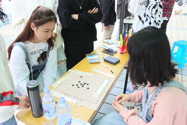 值得一提的是,此次活动游戏环节不仅结合了诗词、书画、戏曲等优秀的中华经典文化,而且还在礼品设置上做足了功夫:有古风手账本,有仙鹤烫金和纸胶带,还有香甜软糯的糕点……富有特色的礼品尽显文化古韵之美。在主摊位旁播放的古风歌曲也激起了同学们对古典生活艺术的美好想象。除此之外,传统文化游园还吸引了两位老人,慈祥的微笑在他们的脸上洋溢。