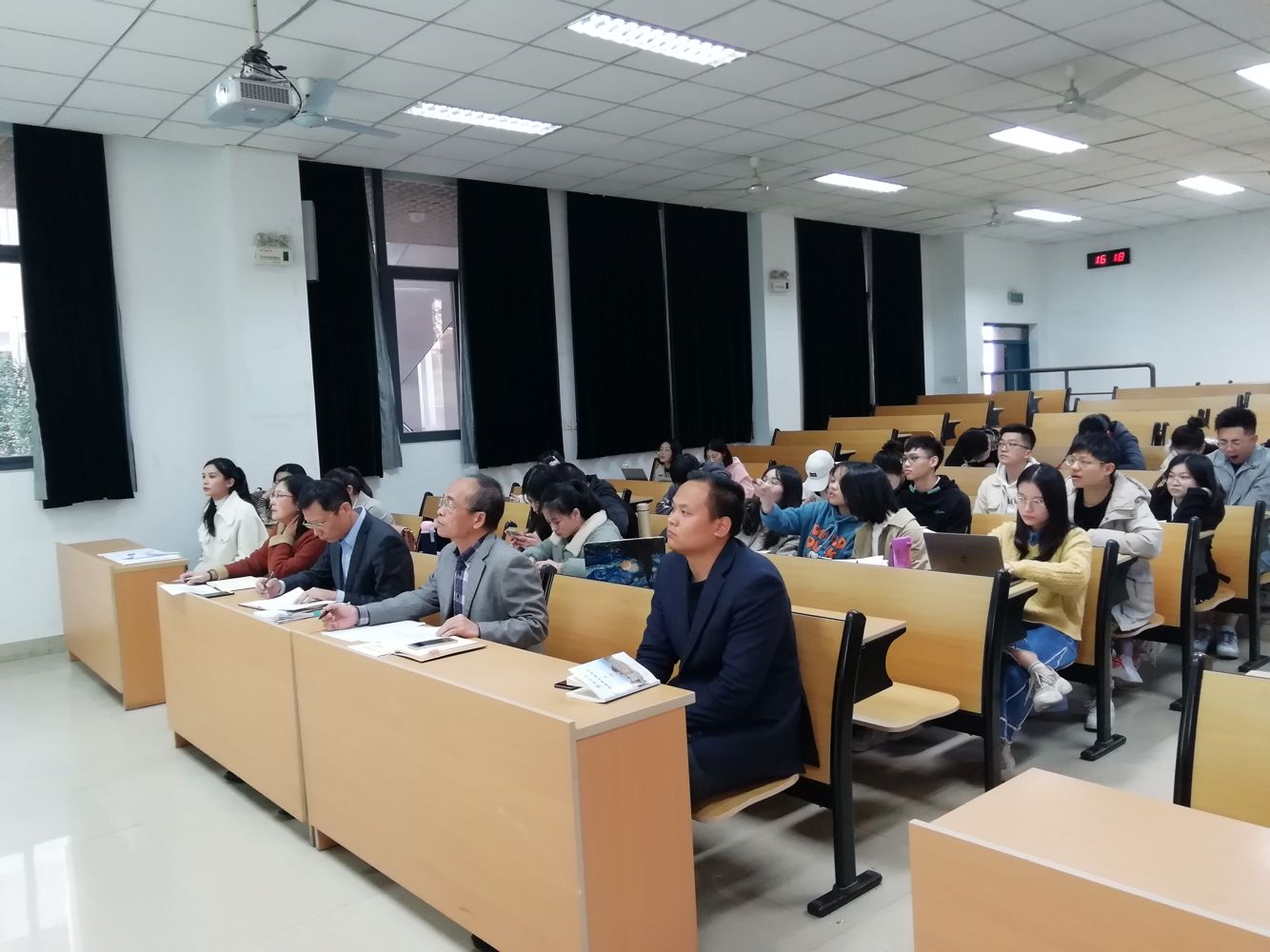 党委书记林秋生老师、党委副书记郑志刚老师、党委组织员张静老师、各学生党支部书记以及党员群众代表。会议由赵静怡同志主持,议程分为支部书记述职演讲、党员及群众代表现场测评、学院党委委员考核和会议总结等四个部分。
