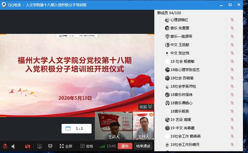 党委王群书记、党委郑志刚副书记出席开班仪式,本次培训班采取线上形式,共有94人参加此次培训。仪式由郑志刚副书记主持。