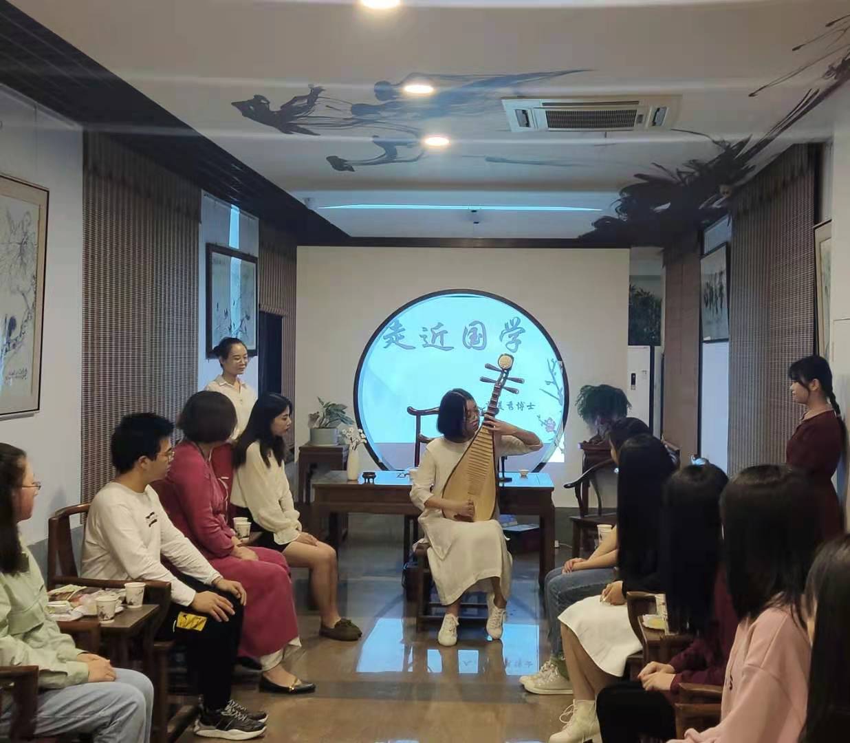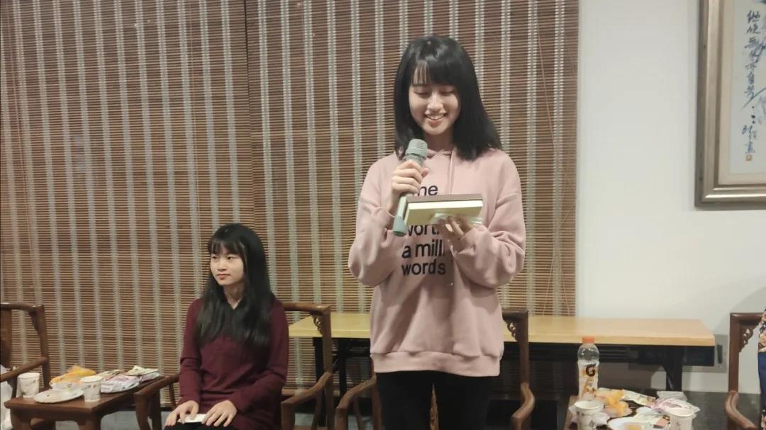 在清悦的琵琶声中,“击鼓传诗”活动拉开了读书会的序幕,同学们分享了自己对于拿到的诗词的理解,或全面深刻,或别有新意,现场气氛热烈活跃。