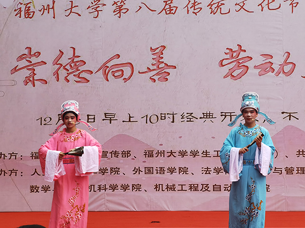 值得一提的是,本次游园会突破了以往的模式,增加了文艺汇演环节,让现场气氛更加火热。《折纸花满衣》节目别出心裁,将歌舞、朗诵、书法融为一体,展现了传统文化精髓。相声《白蛇传》化用经典,风趣幽默,引得全场开怀大笑。轻盈柔美的古风歌舞《小城谣》重现中国传统服饰的魅力,不禁让人啧啧称赞。最令人印象深刻的则是广西独弦琴表演和非遗越剧《十八相送》,不但了表现出了同学们绝佳的才艺,更向大家了展示了中国非物质文化遗产的魅力、弘扬了我国优秀的传统文化和民族个性、民族气质,鼓励着同学们了解传统文化、自觉发扬传统文化。最后,燃爆全场的舞蹈串烧将气氛推向高潮,为本次文艺汇演画上圆满句号。文艺汇演紧扣传统文化主题,展示着中华文化的方方面面,让同学们切身感受文化风韵。