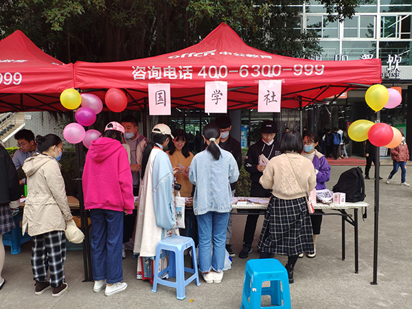 游园会期间,一个个各具特色的活动摊位吸引了同学们参与其中,非遗社的剪纸和脸谱绘制;国学社的国学常识挑战;书画社的猜字活动和风筝绘制;以及潮韵文学社携手钟声文学社带来的积分挑战活动、趣味飞花令……除了多彩的活动,活动奖励也独具特色:不仅有古风手账本、校园风景明信片,还有诗歌和脸谱书签等等。活动礼品围绕游园会主题,不但充满创意,更展现着传统文化风韵。