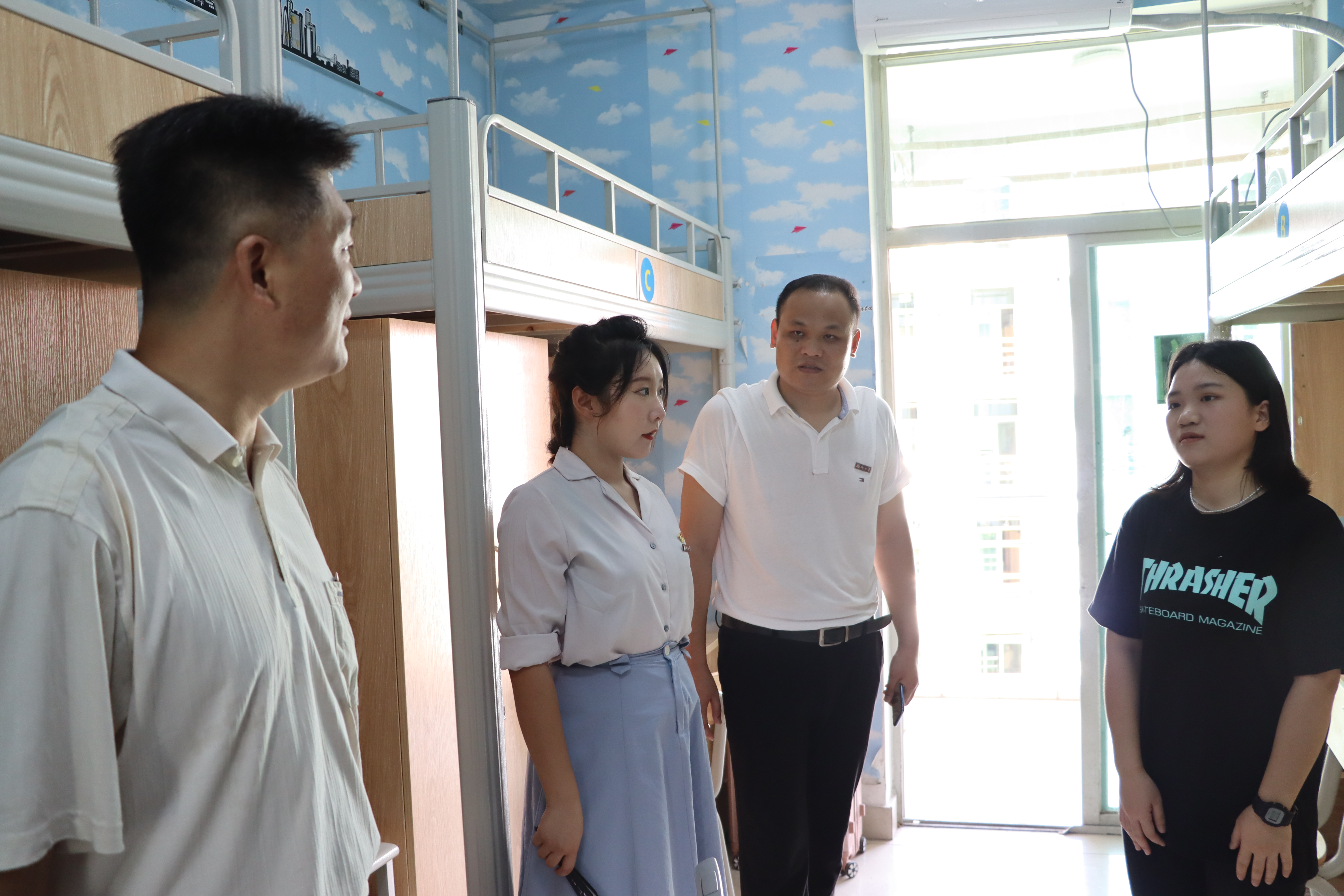 党委王群书记、院长吴慧娟教授到迎新现场关心指导,在学工组辅导员的陪同下,走进新生宿舍,亲切询问同学们到校后的情况,并对新同学表示热烈欢迎。