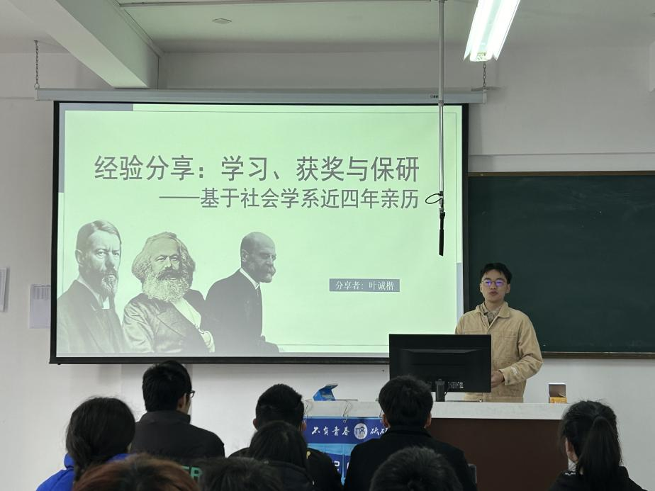 接着,2020级社会学本科生叶诚楷作学习经验分享。叶诚楷曾获得国家奖学金、色情游戏