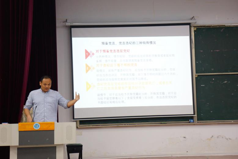 会后,2023级全体本科生、研究生入党积极分子在齐朝阳老师的带领下学习党章。齐朝阳老师介绍《党章》基本纲要,并以《中国共产党纪律处分条例》为引,结合同学们在校园里的学习生活,要求入党积极分子们争做身边同学的表率,共同塑造向上向善的学习生活环境,在实践中展现向党组织靠拢的坚定信念。