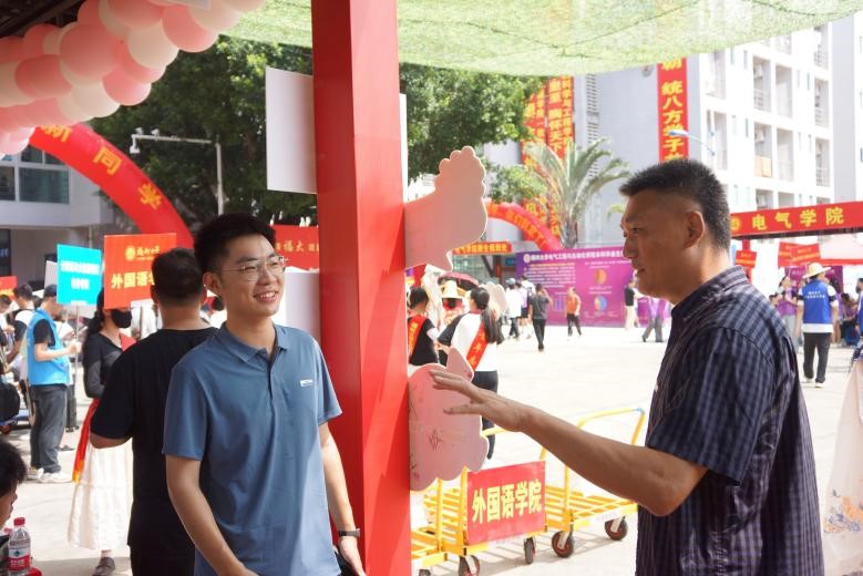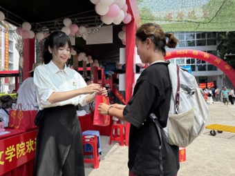 发挥学院风采和社团特色,设计既有人文底蕴又富含趣味性的活动。雅居论道茶社为新生与家长递上清茶,驱散暑热;汉服社身着汉服,展现特色文化之美;音乐学系学生现场演奏,一弦一音传递温情与祝福。学院还为新生准备了包含特色文创、宿舍用品等在内的专属小礼包。新生在迎新点拍照留念,记录初入校园的珍贵瞬间。