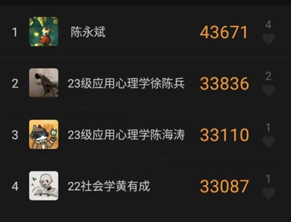 (部分迎新志愿者微信步数展示)