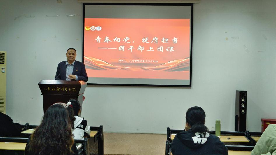 楼202室顺利举办。学院团委书记齐朝阳老师作“青春向党,挺膺担当”主题讲授。