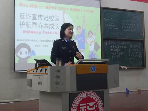 庄警官首先对网络电信诈骗作概念解释,结合真实案例展示诈骗特征,尤其对防范刷单诈骗作重点强调。庄警官告诫同学们,面对诈骗时自作聪明的“反诈骗”行为可能泄露个人信息,落入诈骗圈套。