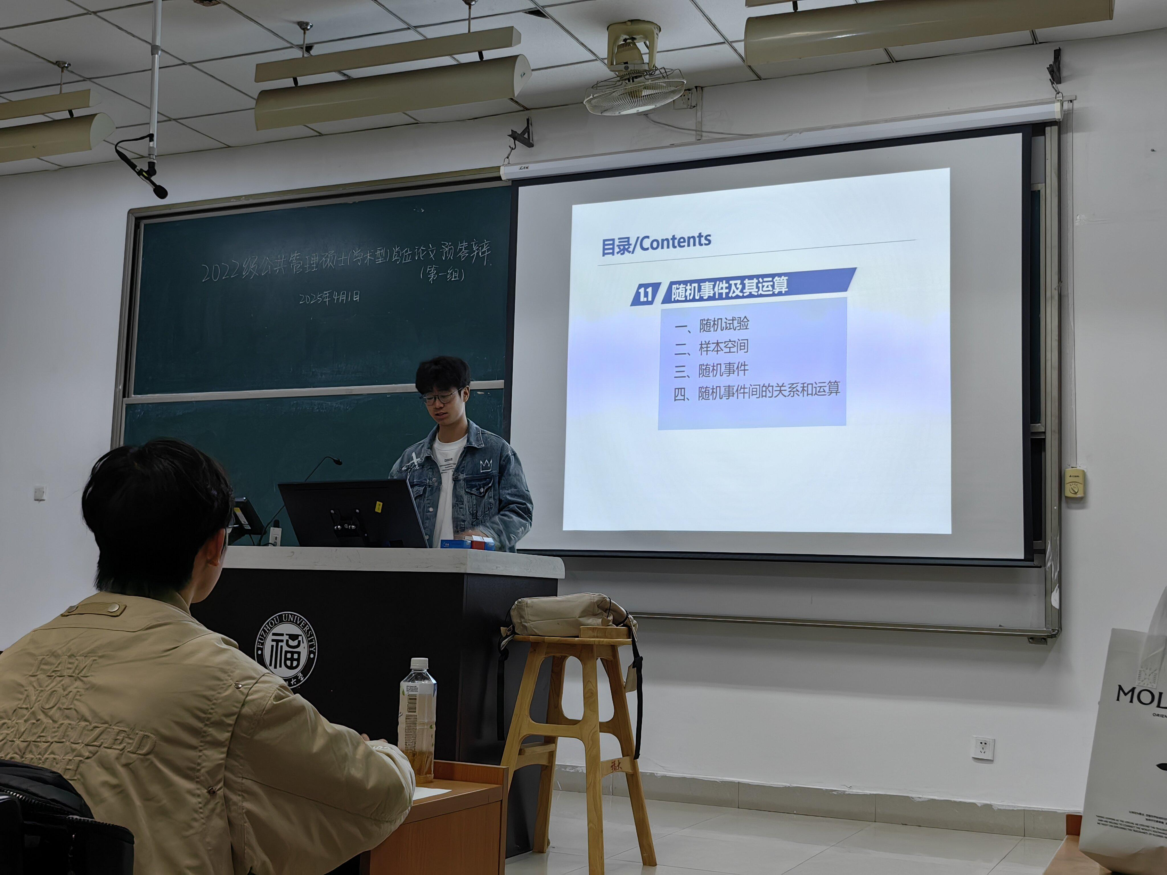 于旗山校区文2-305教室举办首期概率论与数理统计朋辈辅导课程,邀请2022级社会学专业陈永斌同学担任朋辈辅导老师。