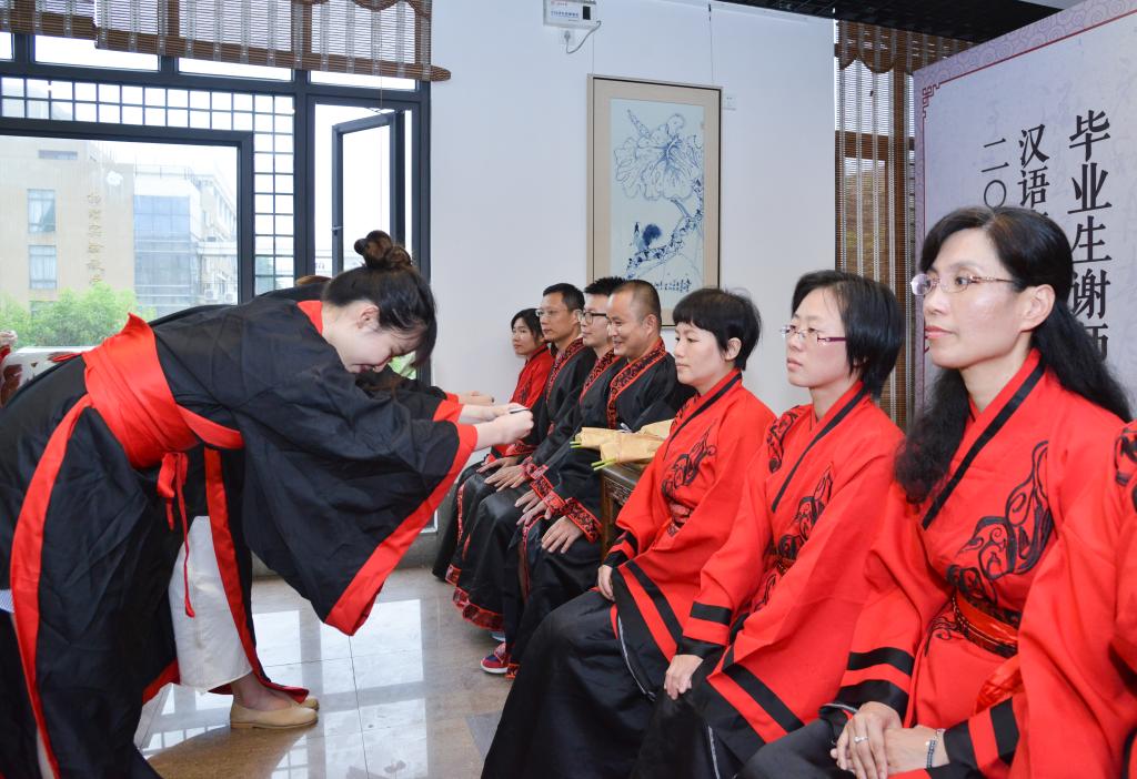 在传统文化馆举行了2018届毕业生谢师礼。这是色情游戏