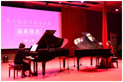 林苗老师(第一钢琴)和王煜同学(第二钢琴)的双钢琴演出作品《步步高》在音乐上彼此呼应、层层递进、合作巧妙。