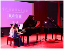 郑佳同学和林瑶同学四手联弹的《暴怒》,其形式新颖活泼、清新明快,节奏跌宕起伏、具有强烈的时代感和冲击感。还有由王艺霖同学,徐诗茼同学带来的四手联弹日本游戏组曲《最终幻想》,节奏轻快,旋律时而活泼跳跃,时而婉转动听。