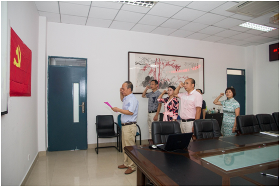 党委在学院204会议室,开展 “重温入党誓词,不忘入党初心”活动。学院全体党委委员在学院党委书记林秋生的带领下,重温入党誓词,庄严宣誓。