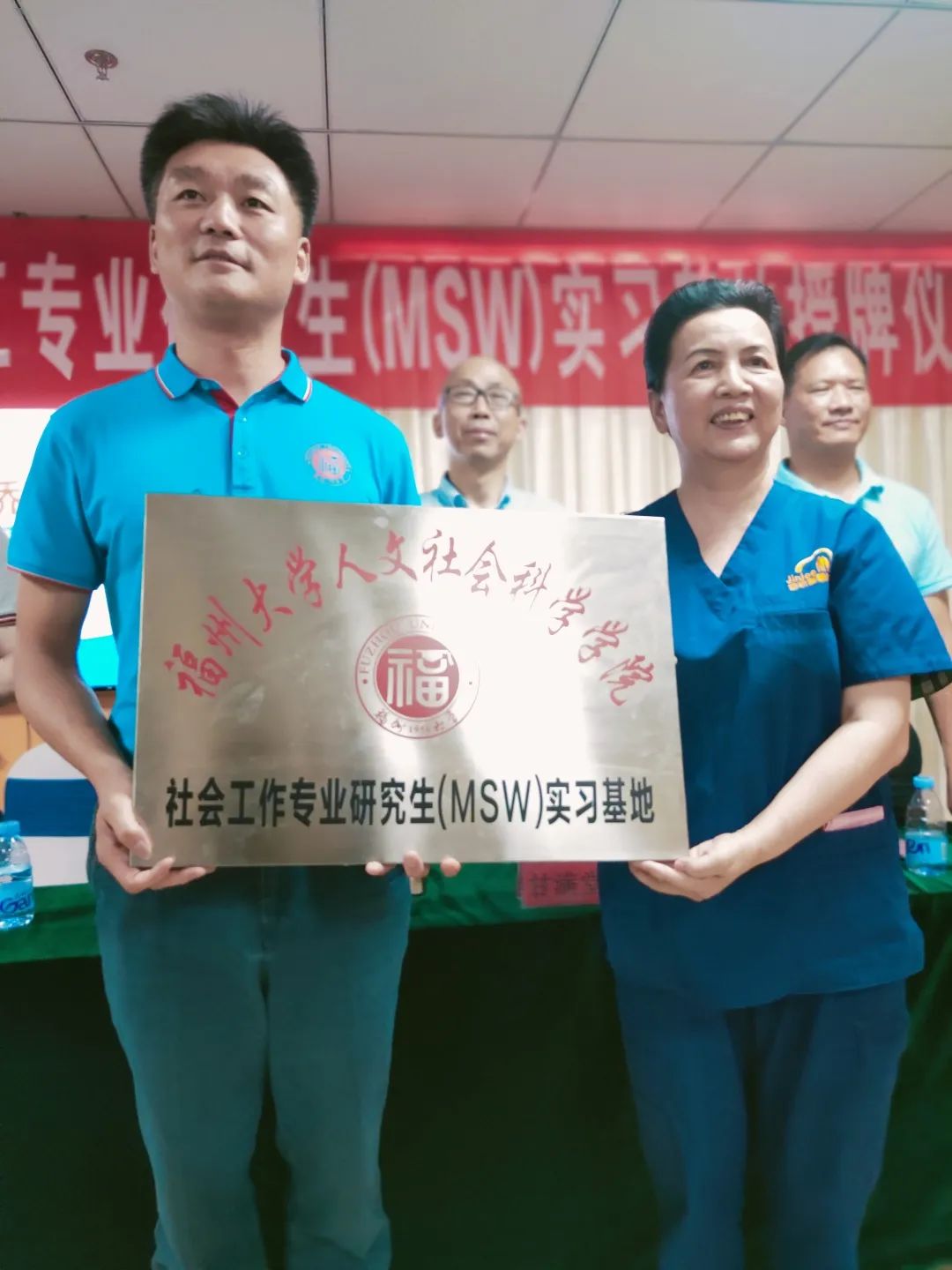 社工专业研究生(MSW)实习基地挂牌仪式于7月3日上午在福清市金桥康养中心举行,学院党委书记王群、社会学系主任甘满堂教授、副主任魏德毓副教授等参加此次挂牌活动。
