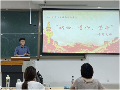 党委书记王群在铜盘校区A208教室开展了以“初心、责任、使命”为主题的党史学习教育专题党课。研究生社会学党支部、研究生社会工作1班党支部、研究生社会工作2班党支部的党员和入党积极分子参与了本次党课学习。