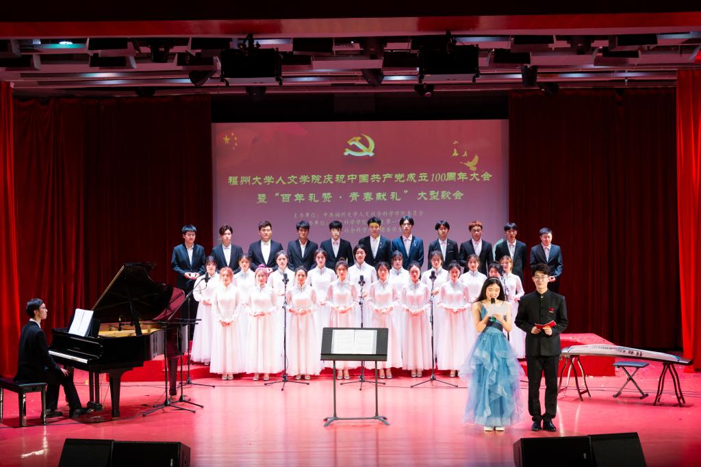 于旗山校区博学厅开展“百年礼赞 青春献礼”大型歌会比赛。