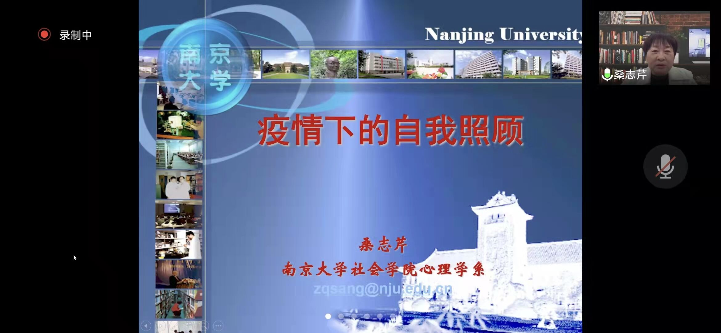 在讲座中,桑志芹教授从“疫情下的自我照顾”的角度,分享了如何从容应对和平衡疫情期间的工作和生活。
