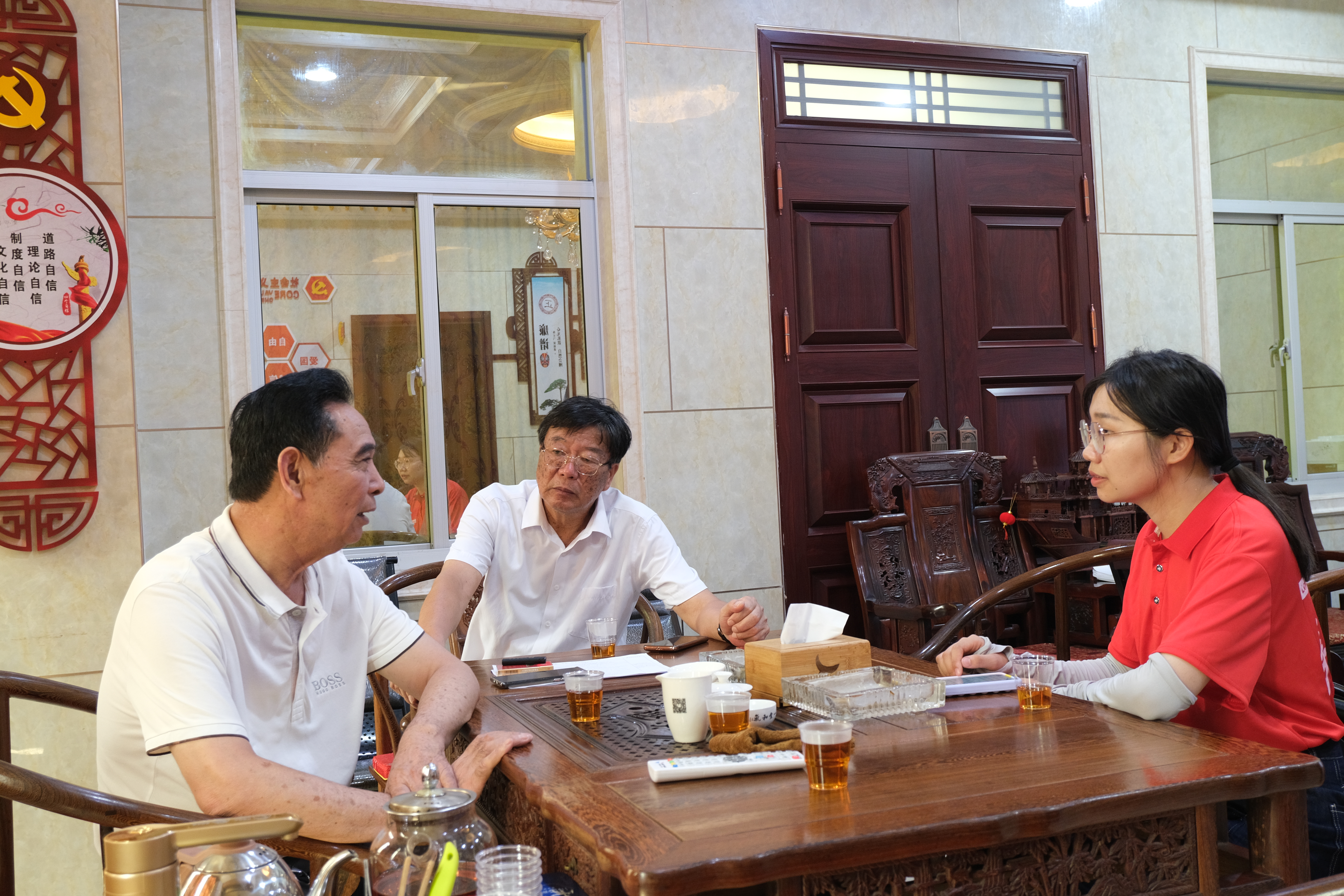 “中华民族一家亲”实践队于7月13日上午陆续访谈了福清江阴侨联主席严和勇,副主席庄曲和、翁昌祥、庄大发,浔头小学校长叶学木。访谈中,实践队成员了解到,这些孩子的父母的常年不在家或是意外离世,造成了他们在心理和后续高中学籍等方面的问题。这也是中华民族一家亲侨乡实践队前往帮助这些孩子的原因所在。