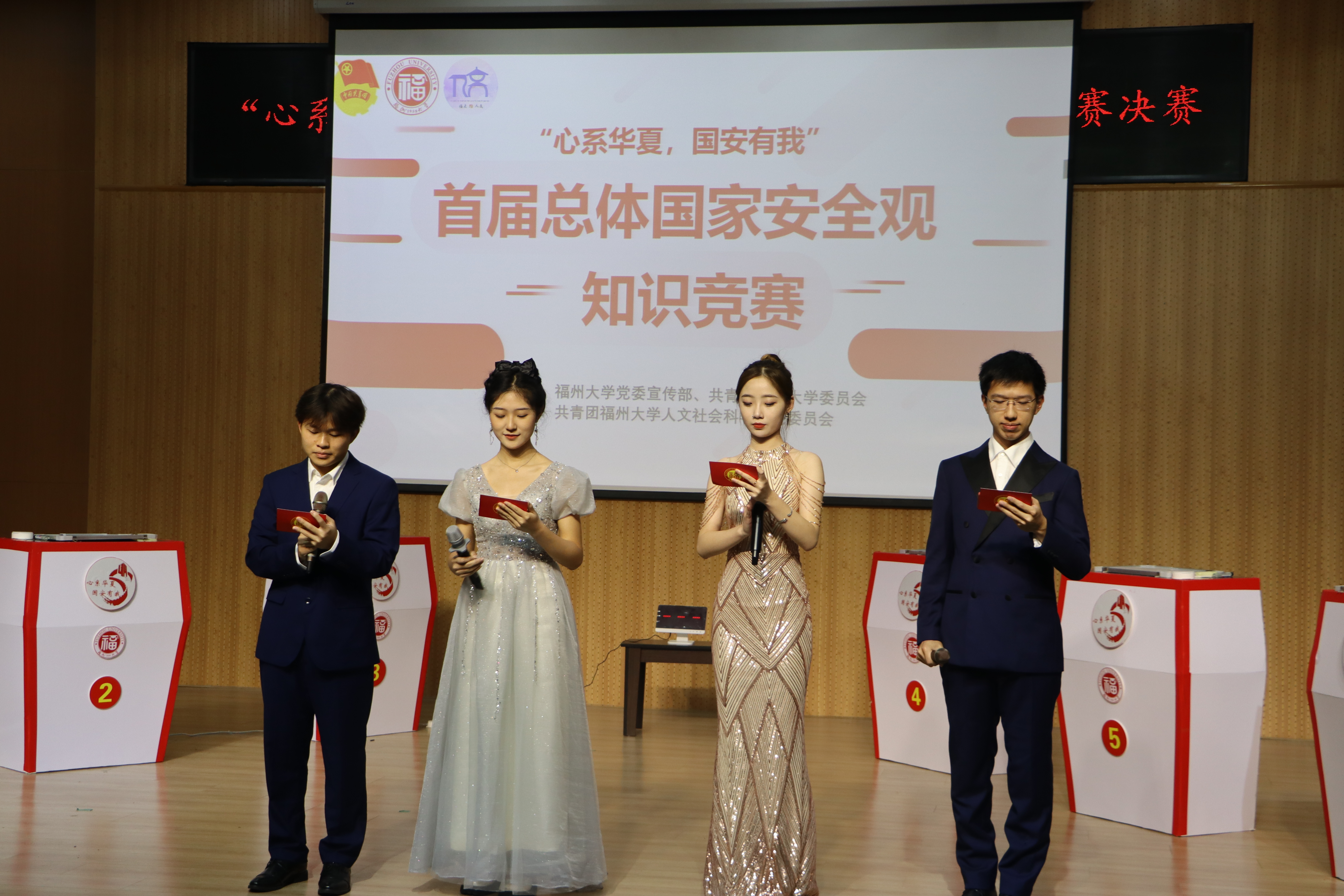 为深入学习党的二十大精神,增强广大学生的国家安全意识,感悟新时代国家安全成就,筑牢国家安全的青年防线,12月3日晚七点,色情游戏 “心系华夏,国安有我”总体国家安全观知识竞赛决赛在旗山校区色情游戏 艺术实践基地成功举办,并在线上平台直播全场比赛。色情游戏 团委刘玮书记、色情游戏 团委叶阁泽副书记、色情游戏 党委副书记陈永福教授、色情游戏 副院长林胜教授及两位特邀国家安全相关领域研究专家等线上出席本次活动。