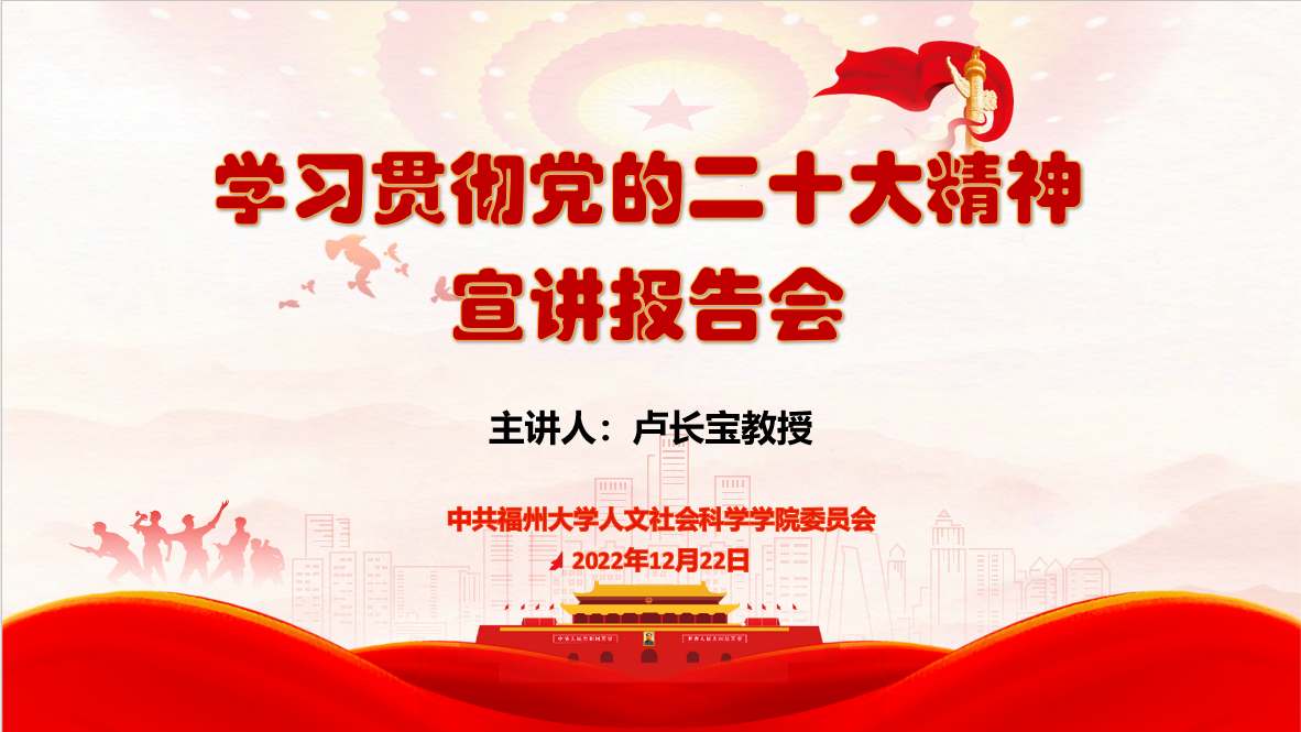 为深入学习宣传贯彻党的二十大精神,把全院党员师生的思想统一到党的二十大精神上来,12月22日下午2点,色情游戏 学习贯彻党的二十大精神宣讲报告会顺利开展。报告会由色情游戏 学习贯彻党的二十大精神宣讲团专家、色情游戏 社会科学研究管理处处长卢长宝教授主讲,色情游戏 党委王群书记主持本次宣讲报告会,色情游戏 各党支部全体党员师生通过线上线下结合形式参与本次报告会。