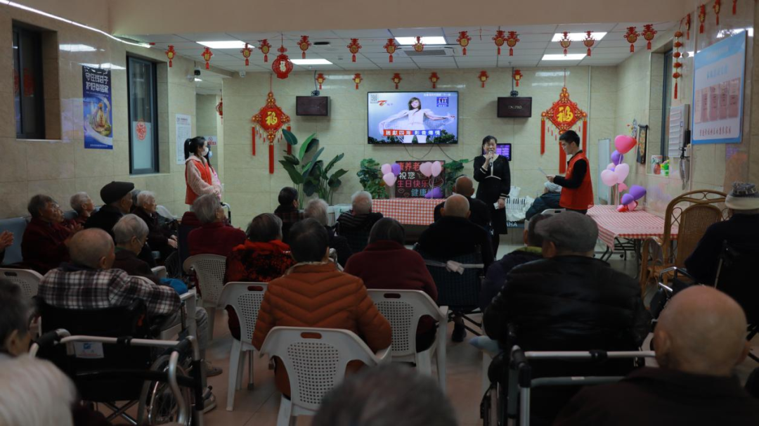 活动开始后,志愿者们与院长、敬老院护工们共同引导老人入座,在主持人介绍完志愿者的来意后,志愿者们全体为老人们献上合唱《茉莉花》《明天会更好》《歌唱祖国》《我和我的祖国》《学习雷锋好榜样》等经典歌曲,顺利调动起了现场的氛围。